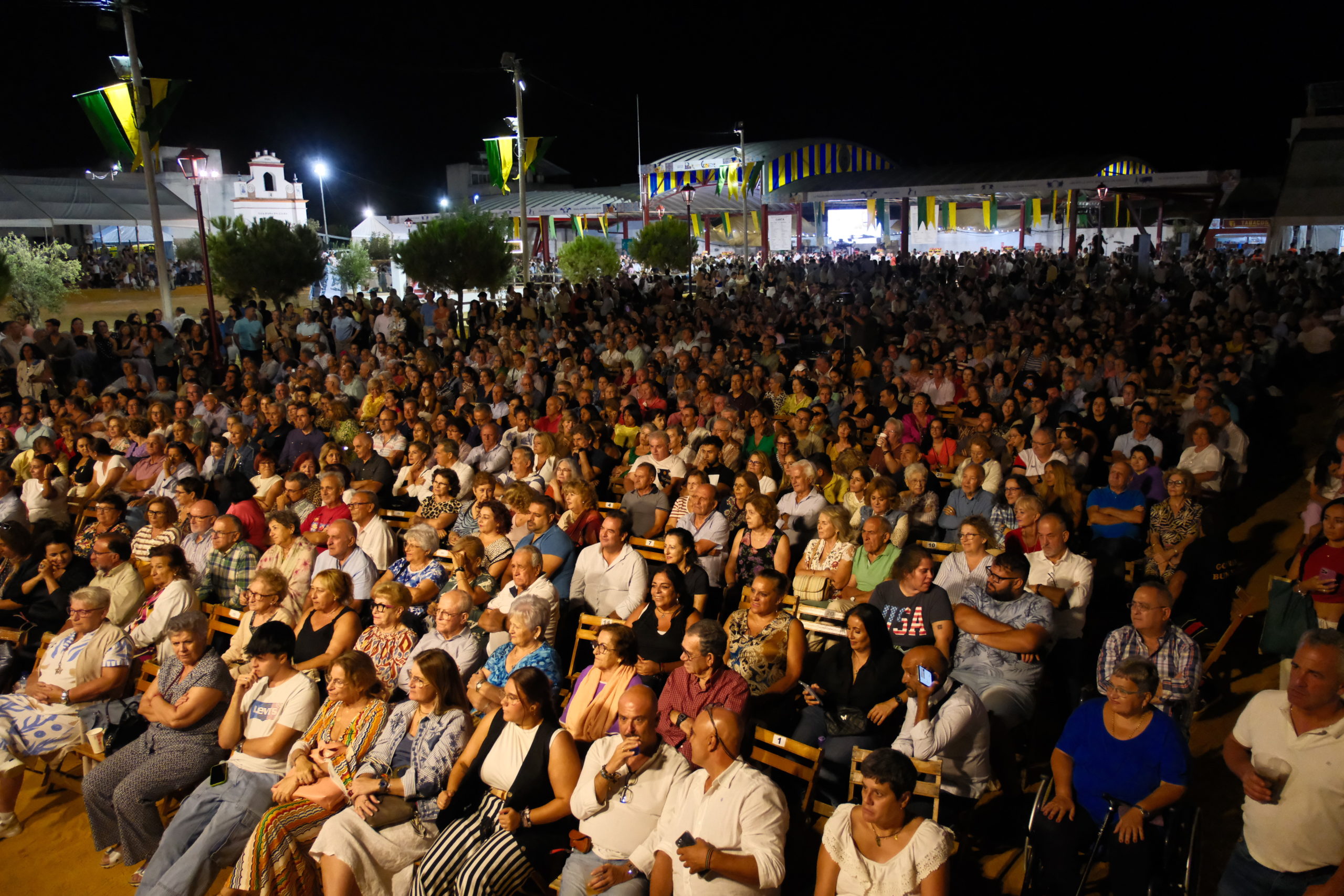 Con un lleno absoluto, el broche de oro al viernes en La Pará lo puso el espectacular concierto de la conocida cantante Laura Gallego, que presentó lo mejor de su repertorio sobre el escenario principal, que lució decorado con unas llamativas recreaciones de tres carretas con los tres Simpecados con los que ha contado la Hermandad del Rocío en toda su historia.