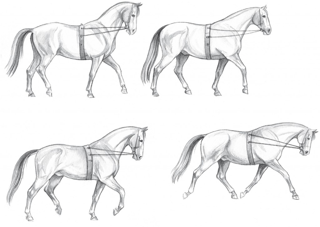 Siempre hay que recordar que el objetivo del trabajo a la cuerda es estimular y mejorar el remetimiento de los posteriores, la actividad del dorso y conseguir que todo el caballo trabaje más hacia el contacto. Por eso hay que prestar mucha atención cuando se da cuerda a un caballo con la ayuda de riendas de atar: estas tienen que estar ajustadas correctamente cada vez, tanto con relación a la longitud adecuada como a la altura correcta. El factor más importante en cualquier tipo de entrenamiento es la correcta ejecución, ya que solo esto asegura que el caballo desarrolla la musculatura adecuada, requerida para la colocación perfecta y una línea superior correcta. Por esta razón las riendas laterales nunca deben estar fijadas demasiado bajas, ya que esto puede provocar que el caballo caiga sobre las espaldas y desarrolle los músculos erróneos. Por otra parte, nunca deben estar demasiado altas, ya que esto puede provocar que el caballo se mueva sin emplear el dorso correctamente.